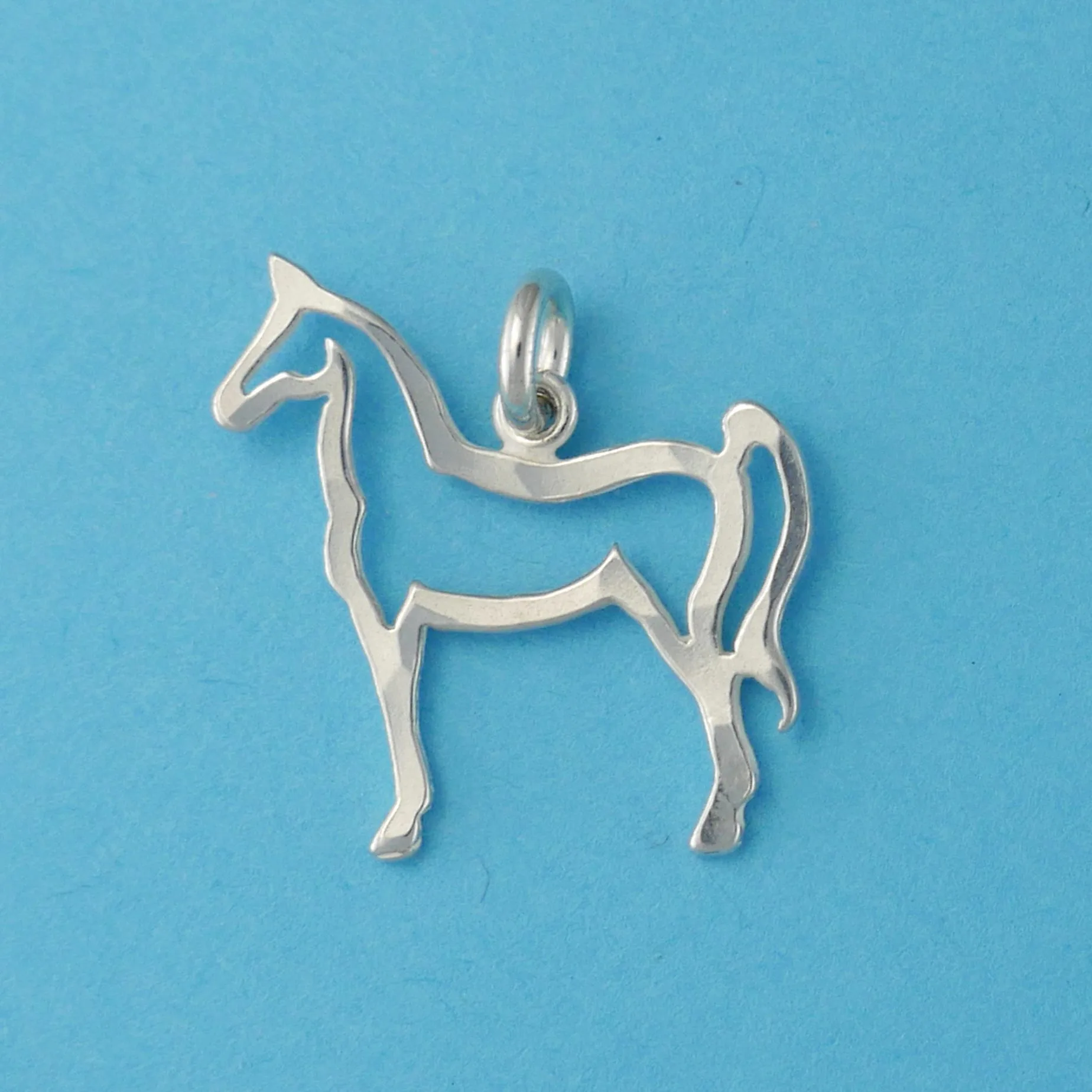 A simple, tasteful and elegant charm, depicting the outline of a proud, upright horse. This is one of Pat’s earliest designs and one we are quite fond of.