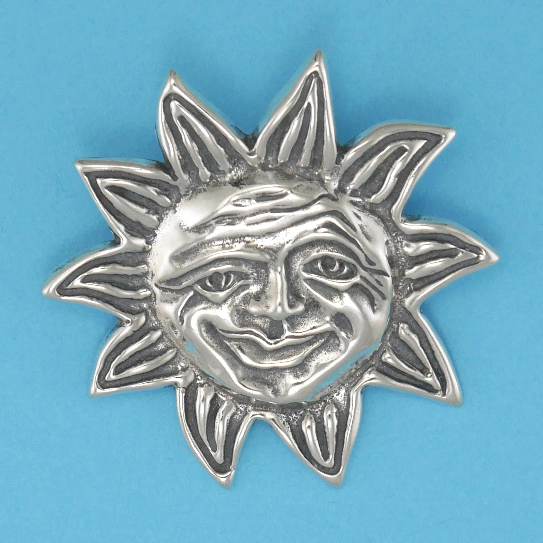 The sun is the bringer of life and light to this world we call Earth! Our sun face pendant is a shining edifice of goodwill and warmth. The expression is one of bemusement and comfort as he is master of all he surveys and totally at home in his role. Add this large, artfully crafted pendant to your collection and let it represent your inner warmth and happiness!