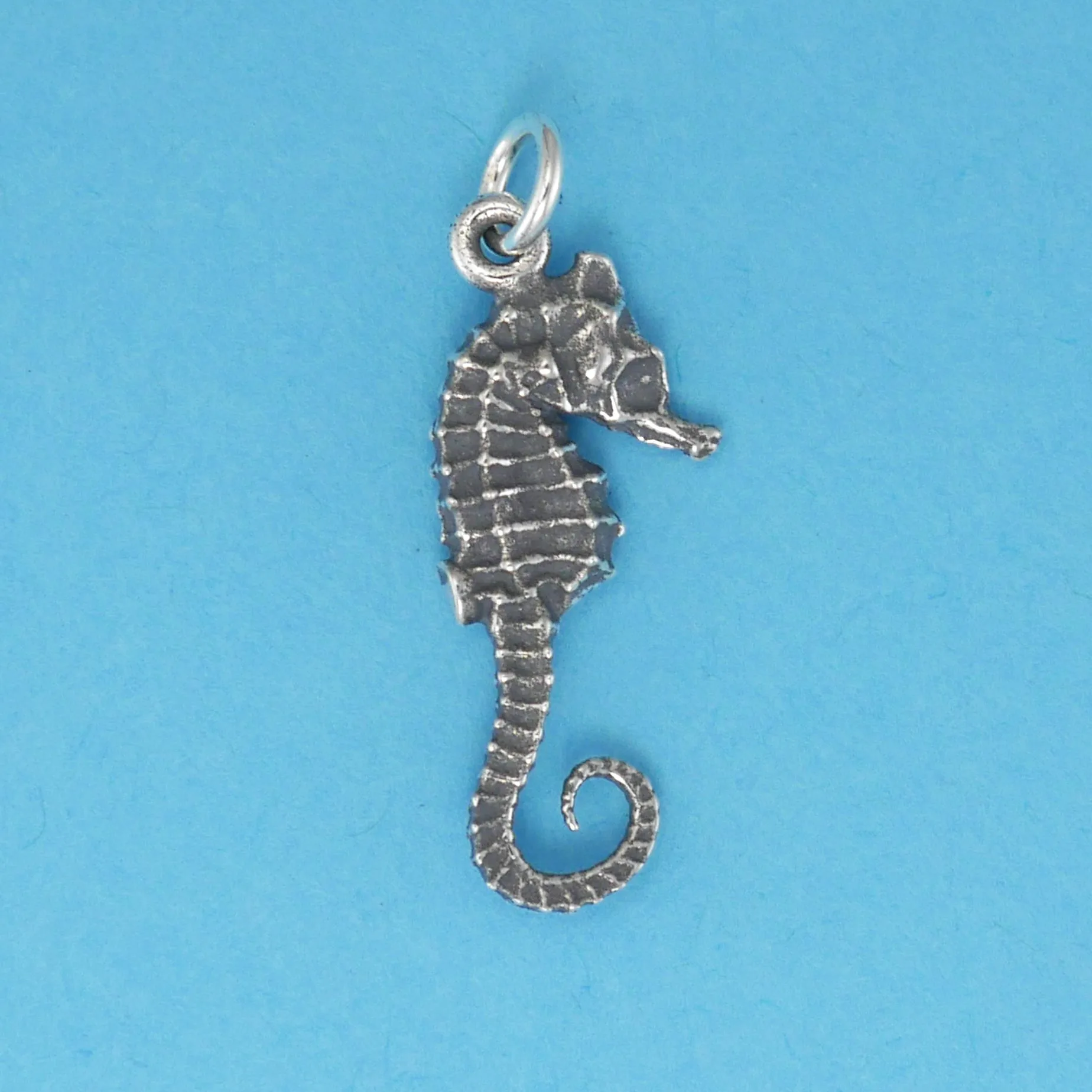 This is a truly remarkable fish! The slowest swimming fish on planet Earth (dwarf sea horse) which can only swim at 5 feet per hour is a member of the seahorse family. The seahorse has evolved bony ring armor around its middle negating the need for ribs. Their equine appearance and tiny fins make them quite cute. Our pendant is highly detailed and is sure to please anyone fascinated with these wondrous creatures!