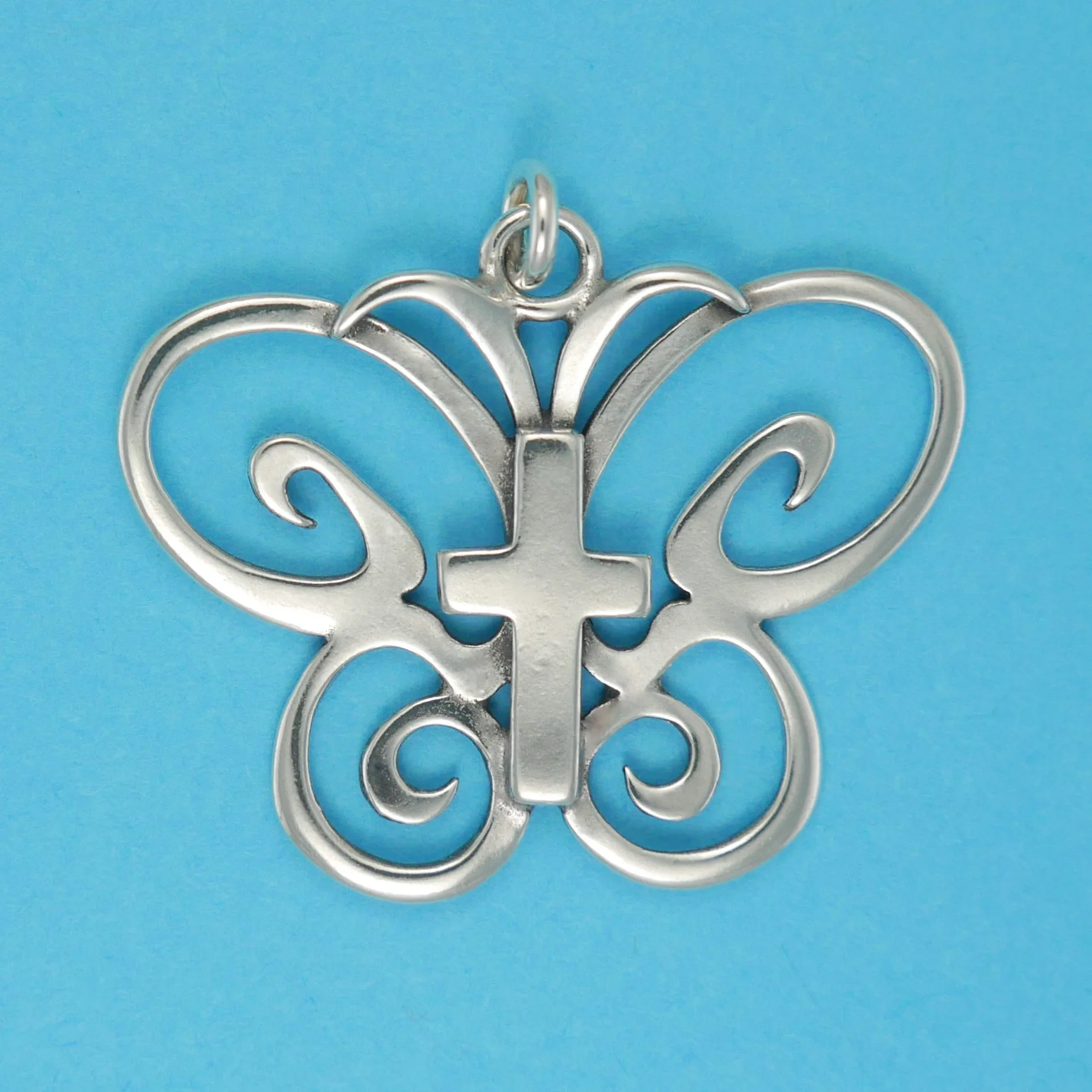 This large butterfly cross pendant combines the meanings of the cross and the symbolism of transformation, love and joy. A heartening celebration of faith.