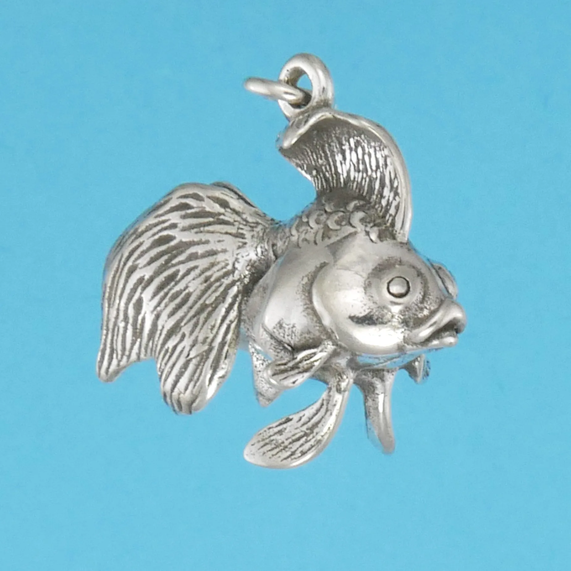 We modeled our charm on the Ryukin or short bodied goldfish. This metal goldfish is so realistic, that it is easy to imagine him swimming to the surface in eager anticipation of the food flakes you’re about to sprinkle on the surface of the water! Add this goldfish to a charm bracelet or necklace chain to commemorate one of your favorite little wet pets!