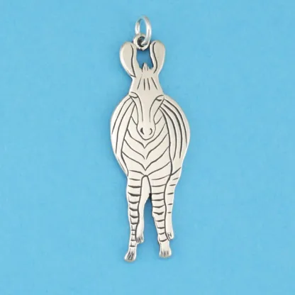 Every Zebra’s stripes are unique to the individual! Our Zebra Front Pendant raises his head from the watering hole to contemplate you with mild interest. This pendant is perfect lovers of natural history!