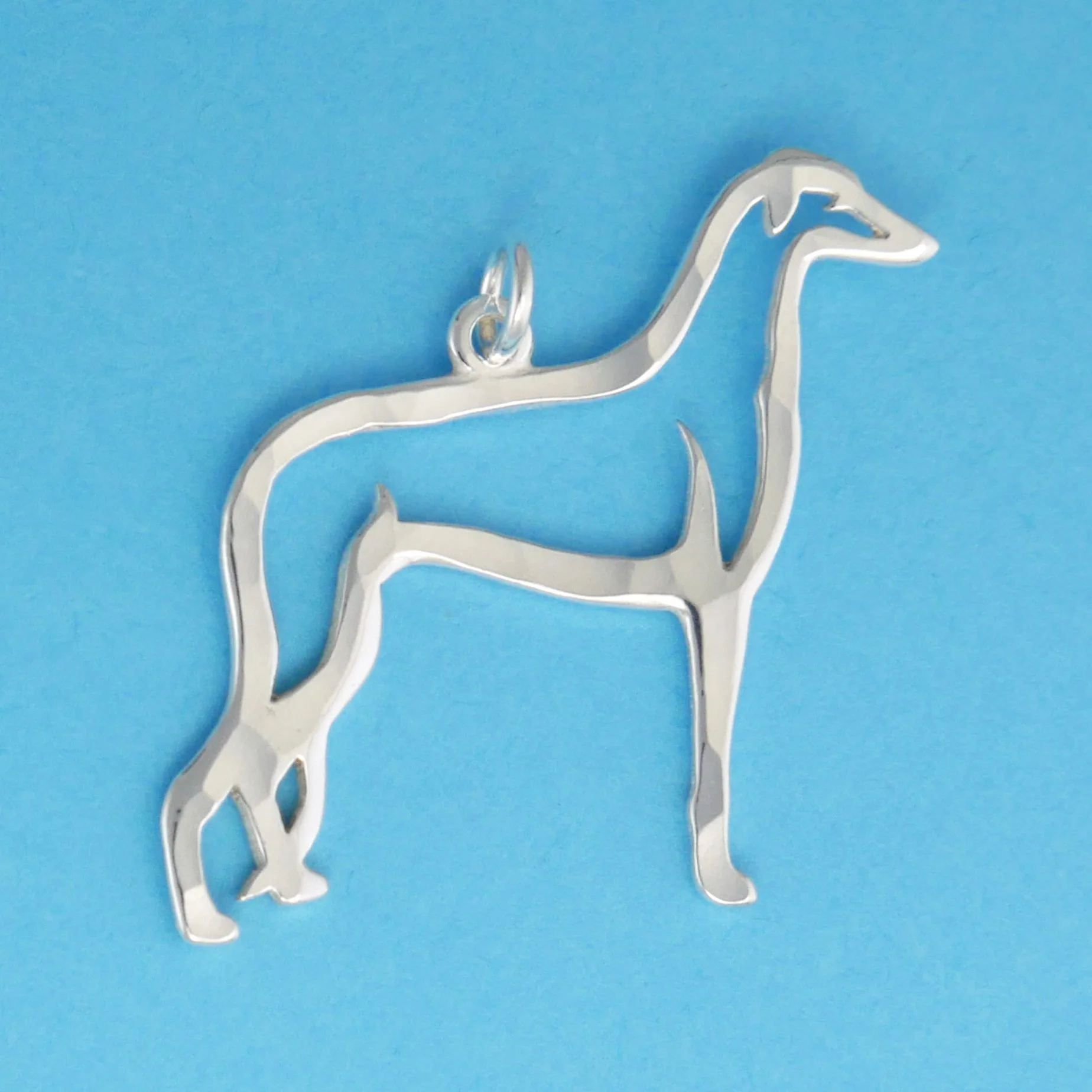 Originally bred for coursing deer, the Greyhound is now most frequently used as a racing dog and as a family pet. They are swift, intelligent and loving. Add our Greyhound dog charm to your collection if you love the breed!