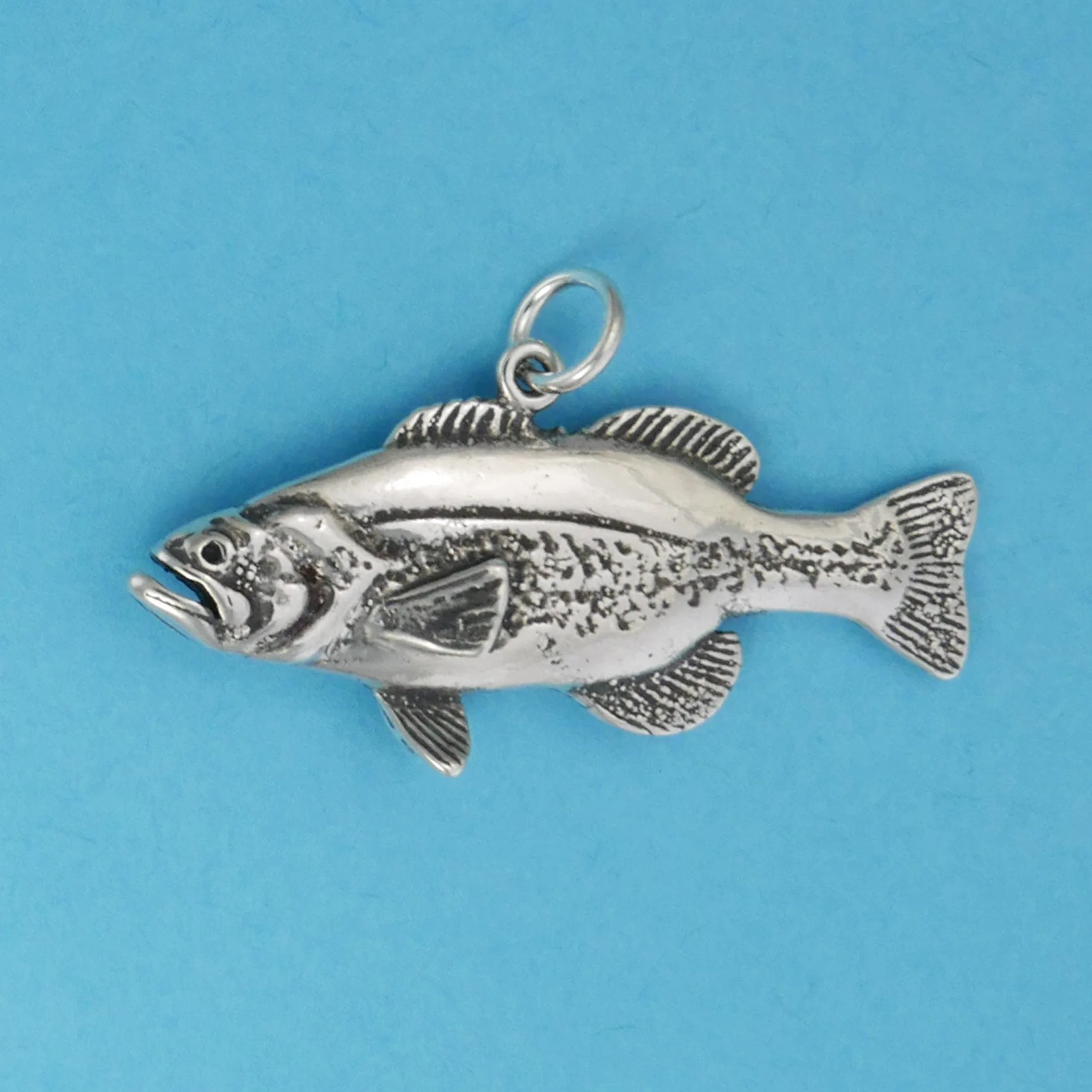 Micropterus Salmoides is a large game-fish, recognized by its pronounced lower jaw and greenish-grey coloration. It is sought after by professional and amateur anglers alike and is well known for resisting vigorously once hooked. When added to a charm bracelet or necklace chain, our largemouth bass is the perfect gift for any avid fisherman!