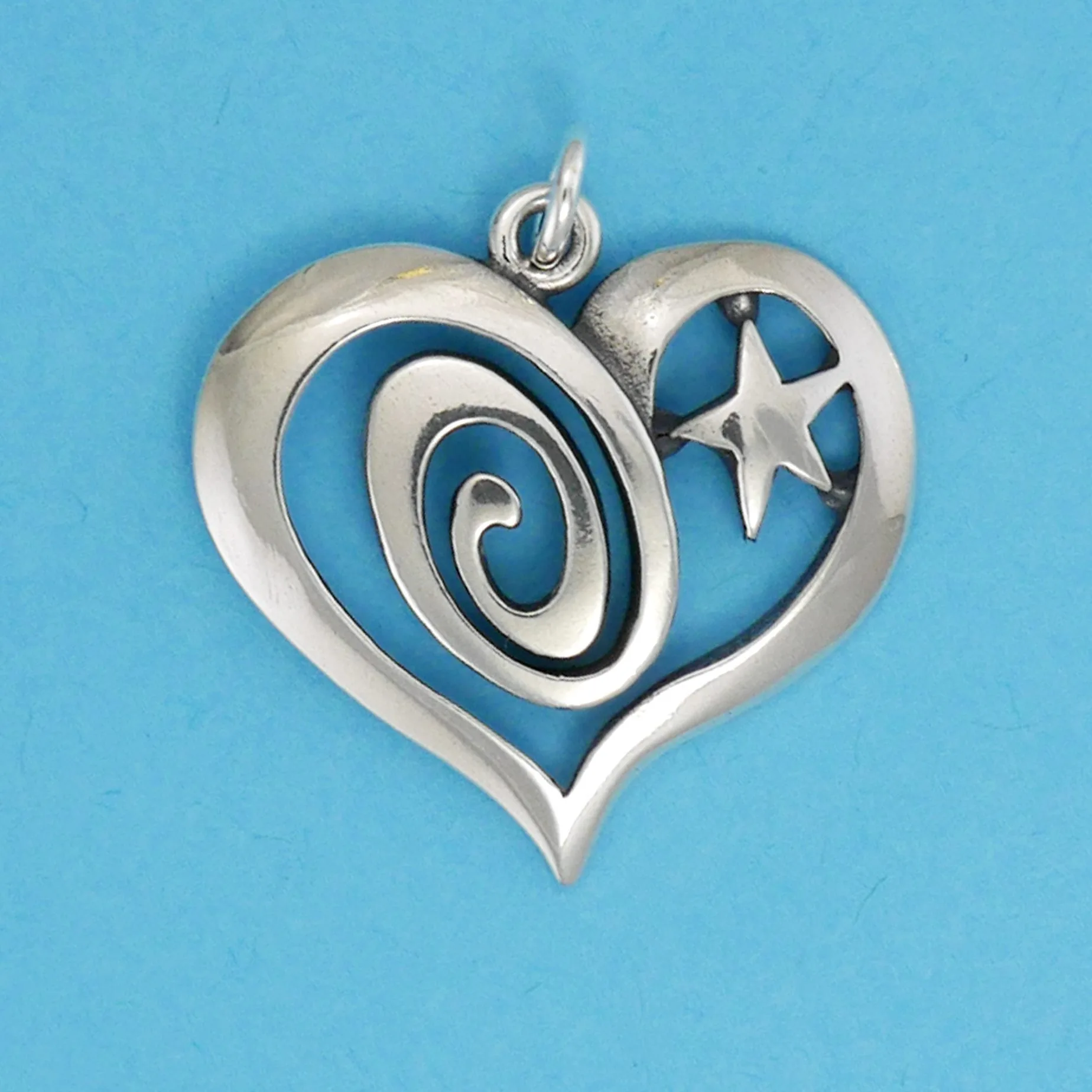 Microsculptures 0822 Swirl & Star Heart Silver Pendant