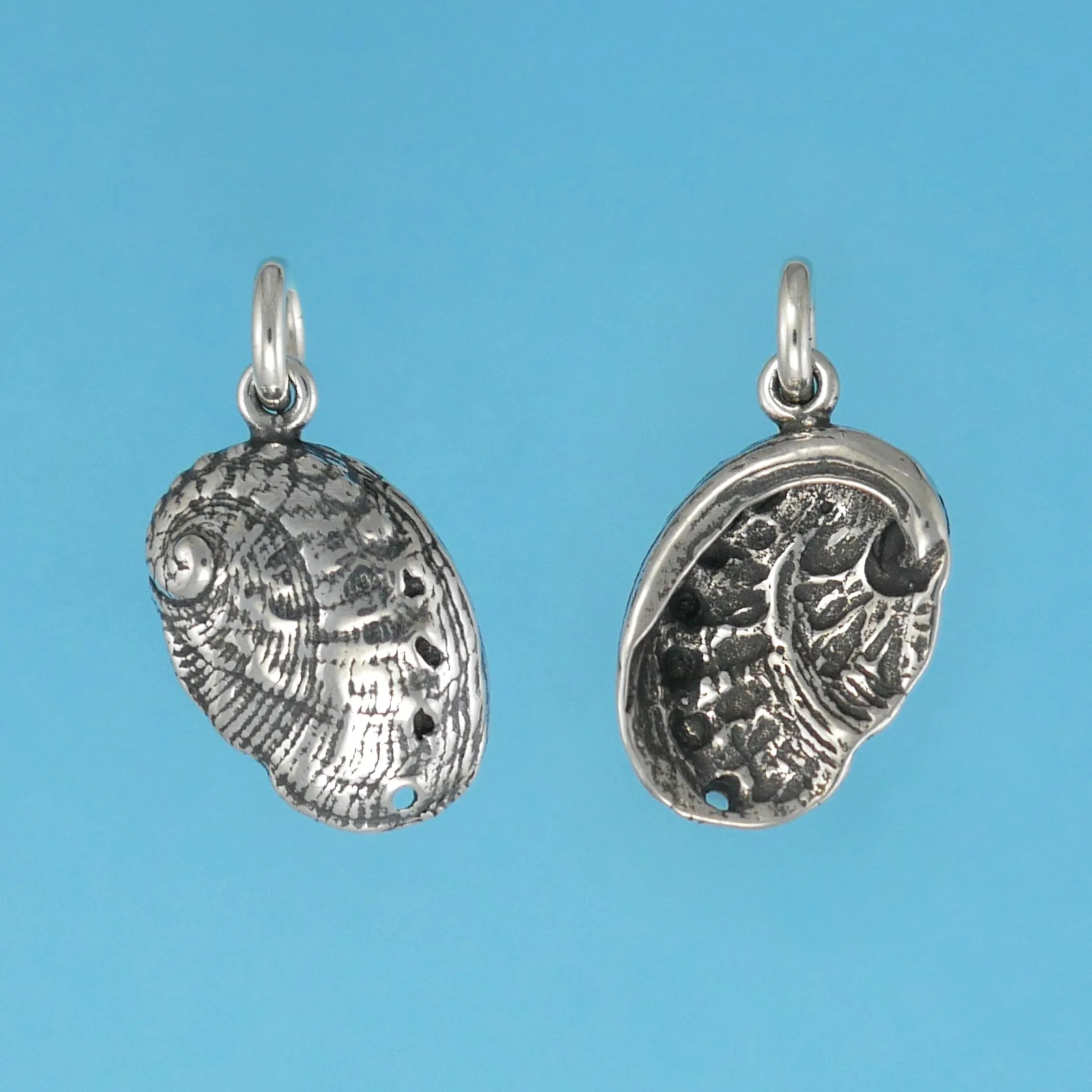 The abalone is a type of marine snail with the affectionate nickname of sea ear bestowed upon it due to the shape of its shell! These wondrous creatures are the source of mother of pearl used in jewelry and other decorative objects. Our abalone shell charm is a testament to the sculpting abilities of our artists as it is a highly realistic and detailed interpretation rendered in miniature. The perfect addition to any ocean themed charm bracelet or necklace!