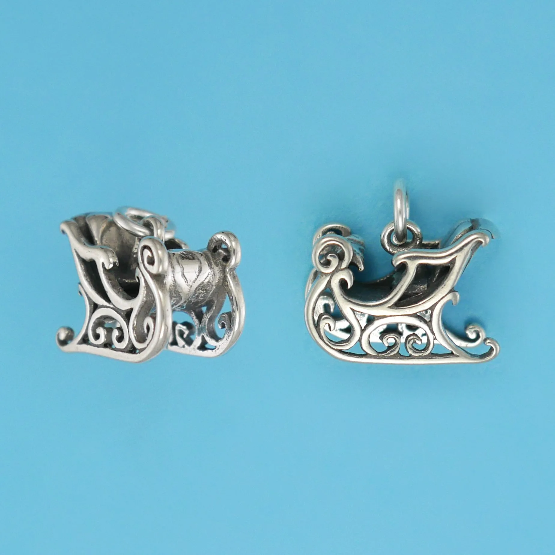 Just hear those sleigh bell jinglin’! The preferred method of winter transportation throughout much of history. Our sleigh charm is meant to bring out the Christmas spirit in even the grumpiest of individuals!