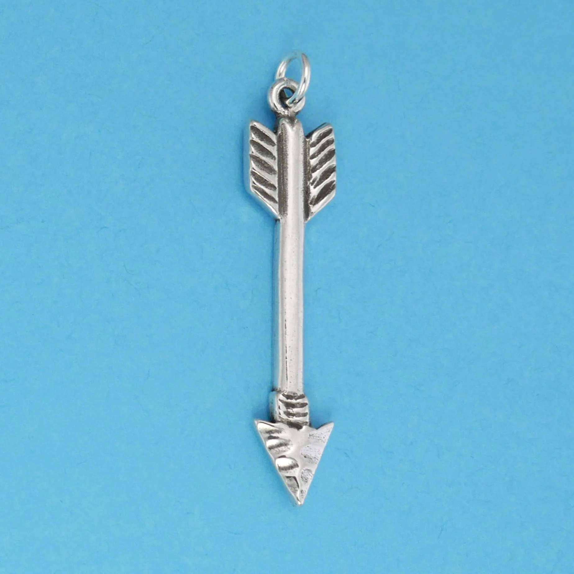 The arrow is a symbol of protection and defense as well courage and forward movement. Our arrow charm is pointing down which in Native American lore represents peace.