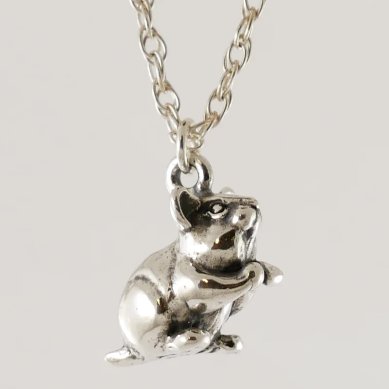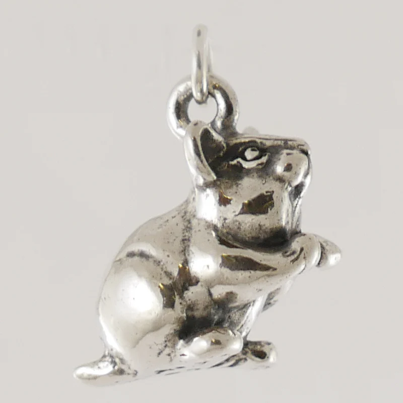 This adorable creature has been a favorite childhood pet for many of us.�Hamsters are stout-bodied and have short tails. They have small, furry ears and short legs. Their thick, silky fur can be long or short�and comes in many colors. Interestingly the word hamster is derived from the German word �hamstern� which means to hoard. This is an apt description of the way in which these little creatures hoard food. They can stuff so much food into their cheeks pouches that their face will double in size!�This sterling silver Hamster charm is the perfect way to celebrate a cherished memory of a childhood pet.�