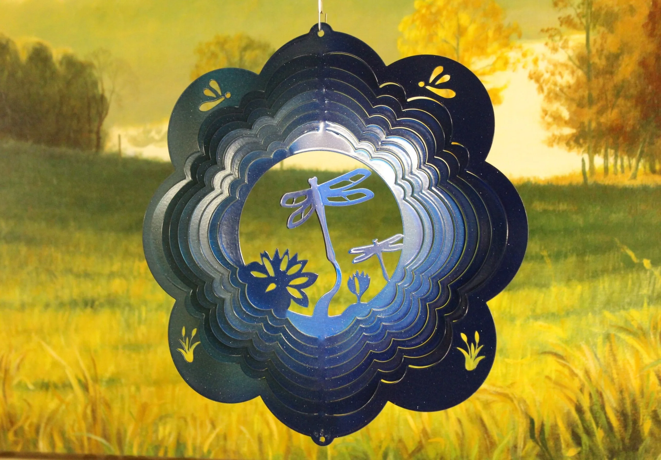 DSA 09381 12″ Dragonfly 3D Wind Spinner-Teal/Blue Starlight