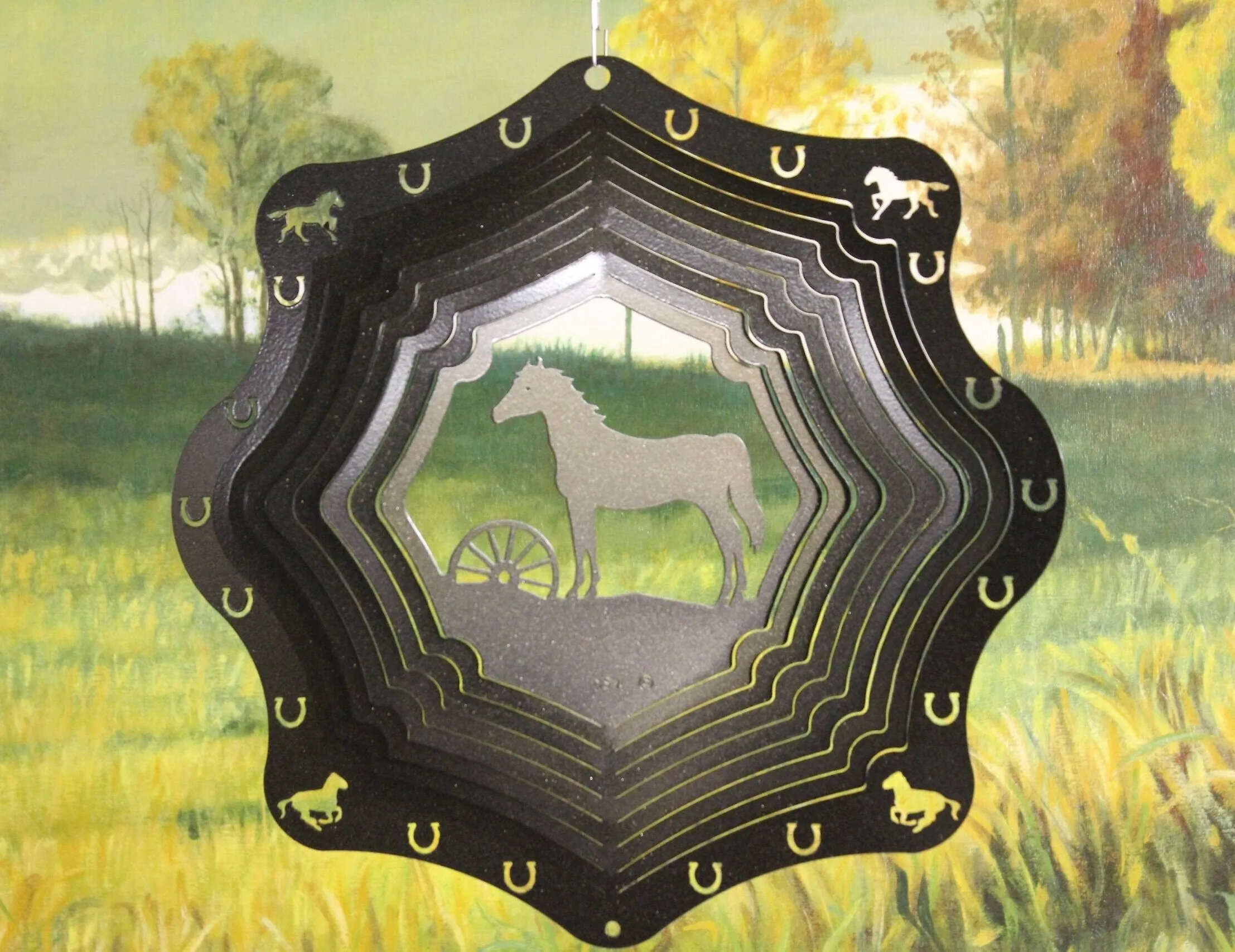 DSA 16851 12″ Horse & Wheel Wind Spinner-Black Starlight