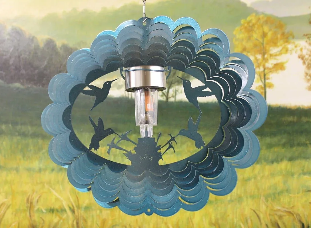 DSA 39562 12″ Solar Light Hummingbirds Wind Spinner-Teal Starlight