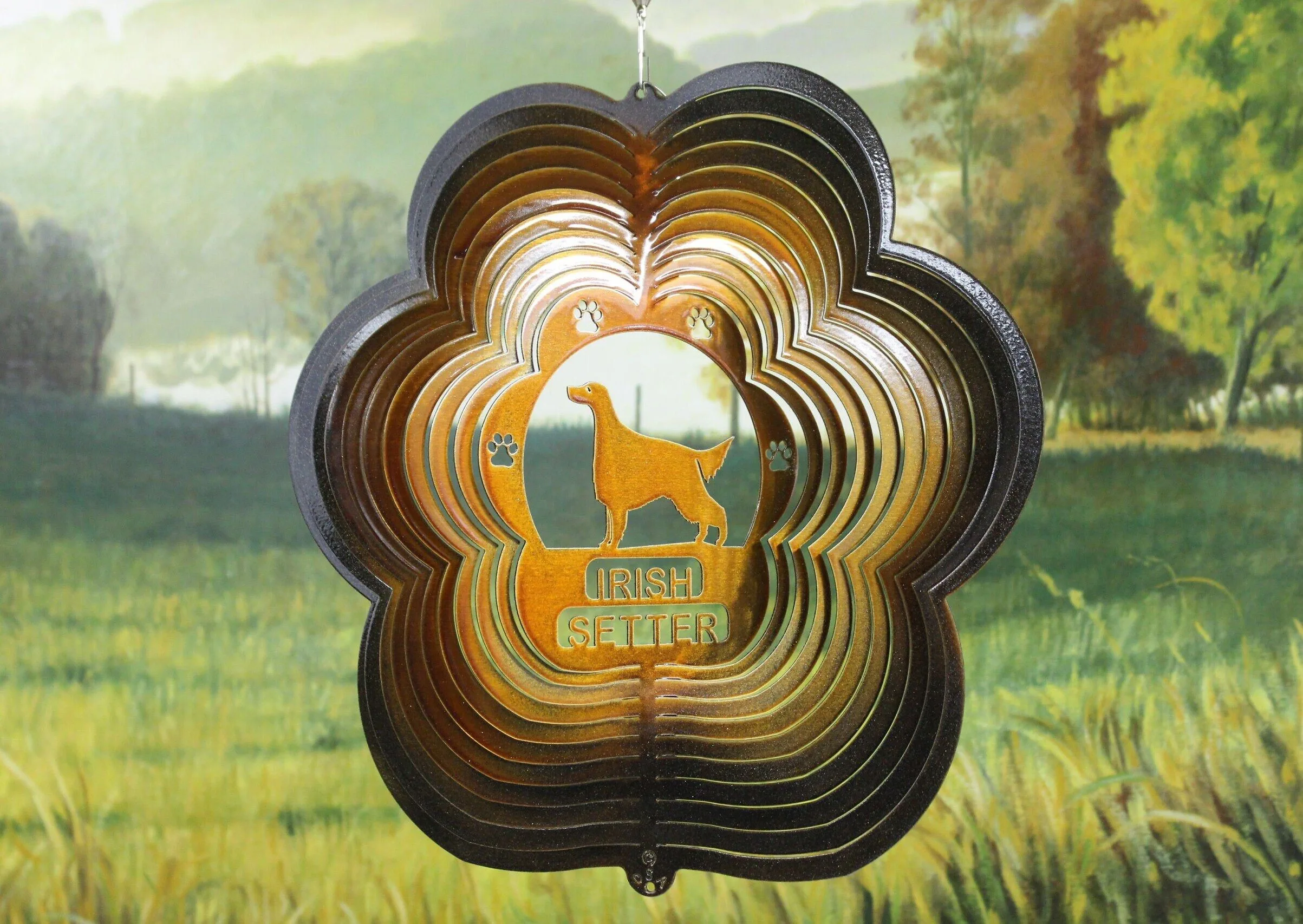 DSA 77975 12″ Irish Setter Dog Breed Wind Spinner-Copper/Black Starlight